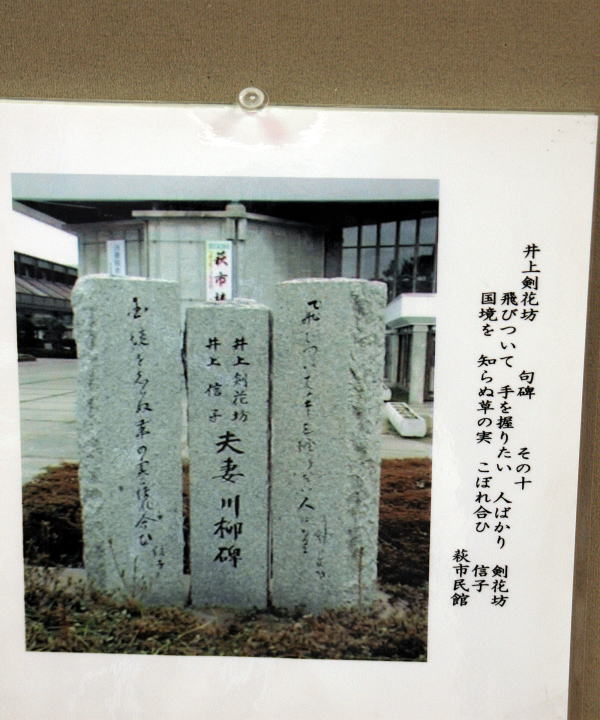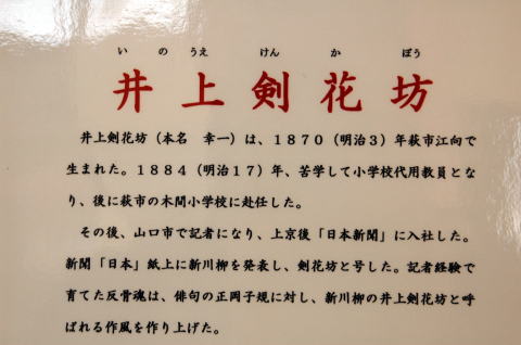 特別企画として、萩出身の川柳作者「井上剣花坊(いのうえけんかぼう)」の石碑と所在地についてパネル展示いたしました。