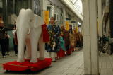 かわいらしいお稚児さんが白象のあとに続いてアーケードを行列いたしました。