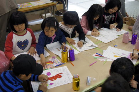 ぬりえコーナーでは真剣に取り組んでいます。力作ができたかな?