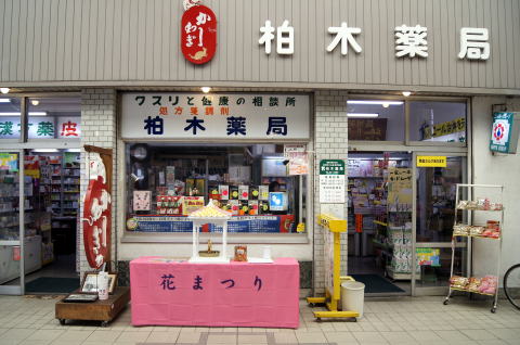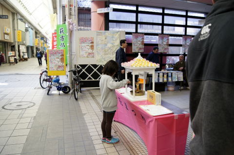 商店街に花御堂を設置させていただき、子供たちも甘茶を注ぎます。
