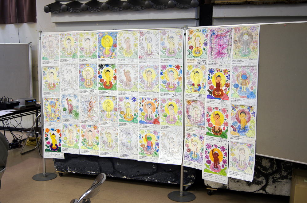 子供たちに誕生仏のぬりえをしてもらい展示しました。