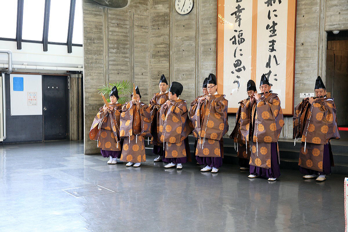 萩市民にもおなじみの光山寺雅楽会、ロビー内に厳かに音色を響かしてくださいました。