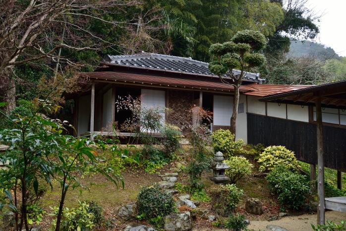 昭和12(1937)年、当寺より650メートルほど東の楫取家旧宅にあった茶室を、