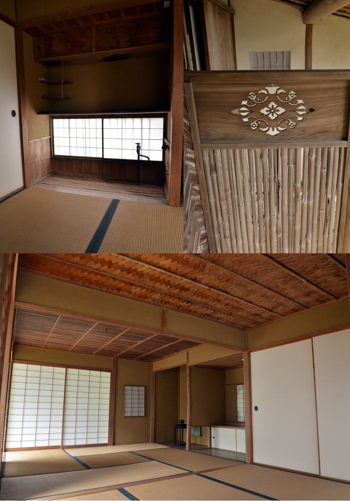 本席は4畳半(写真下段)、網代天井の水屋は3畳(写真左上)、