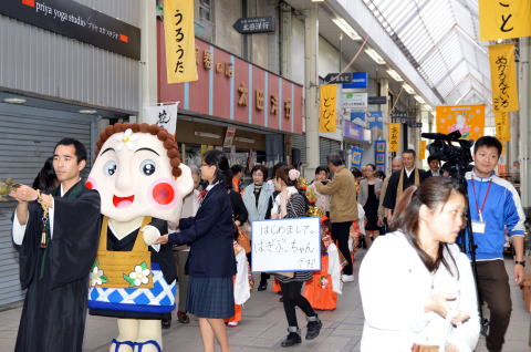 津守町報恩寺から田町商店街まで、稚児行列をおこないました。