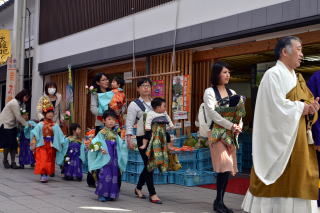 今年もかわいらしいお稚児さんが行列で田町商店街を練り歩きました。