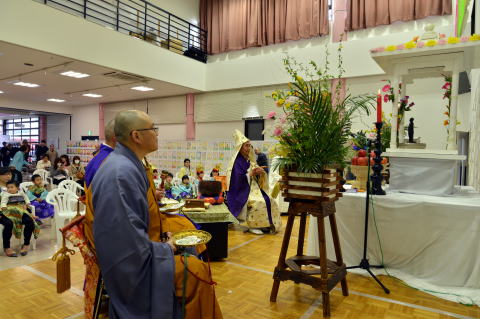 本年は法華宗・日蓮宗・曹洞宗・真言宗各寺院の担当で灌仏法要が厳かに執り行われました。