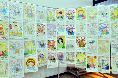 お釈迦さまの誕生仏や、マスコット「萩ぶっちゃん」など、各種ぬりえを展示しました。