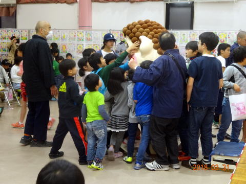 すっかりおなじみ、大人気のはぎぶっちゃん、みんなにもみくちゃにされています。