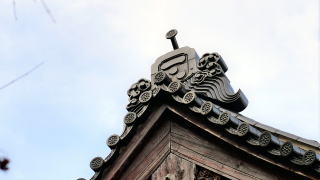 本堂鬼瓦に毛利家家紋「一文字三星」
