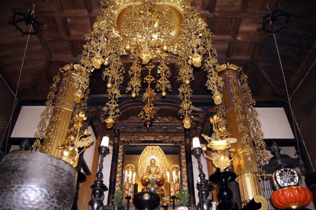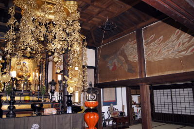 本尊は阿弥陀如来、脇侍を観音・勢至菩薩とする。内陣左右に描かれた見事な鳳凰に圧倒される。
